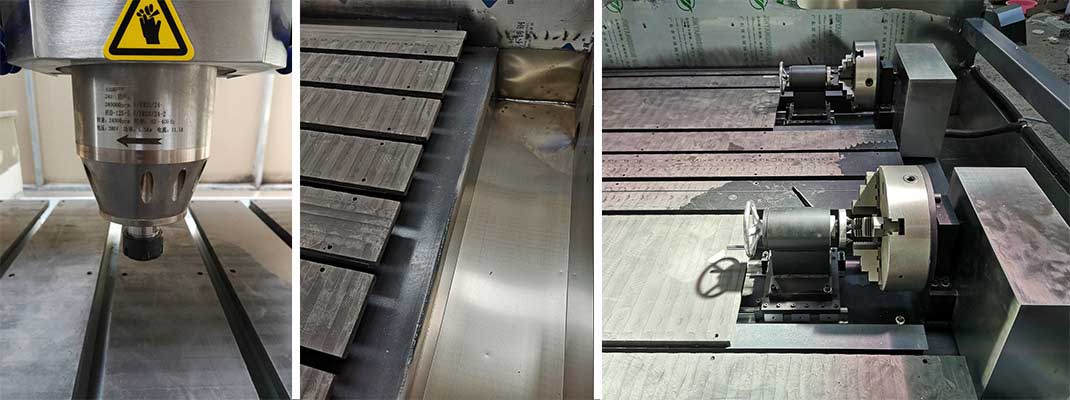 主轴夹头:ER32-10、ER32-12、ER32-16、ER25-6、ER25-8、ER25-10、ER25-12(用于安装刀柄为6/8/10/12/16的雕刻刀)。